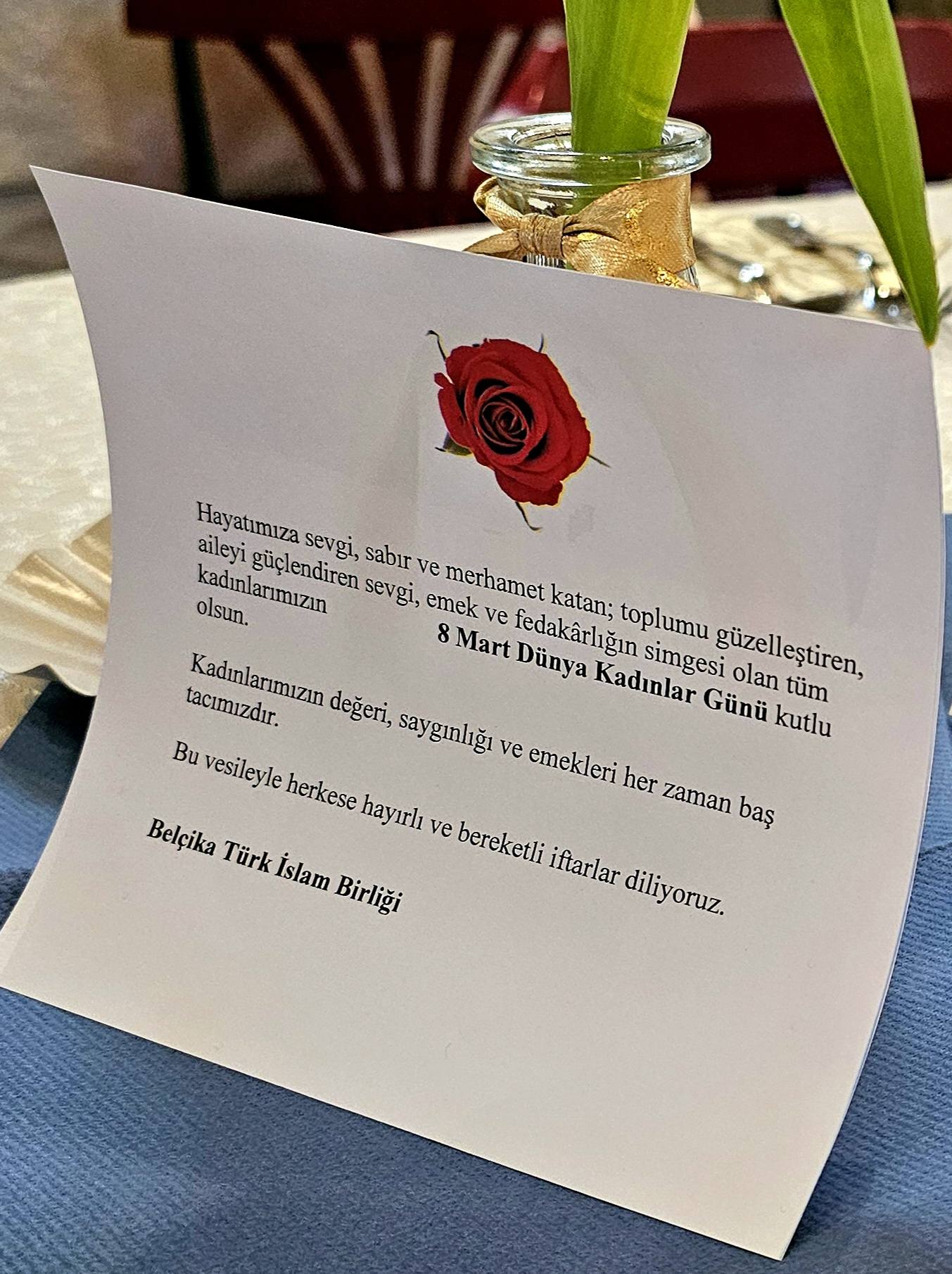 Belçika’daki üç ATİB derneğinin (ATİB Maasmechelen, ATİB Leopoldsburg ve ATİB Anvers) üst kuruluşu olan BTİB tarafından düzenlenen iftar programı, davetlilerin birlikte oruç açmasının ardından samimi sohbetlerle devam etti.