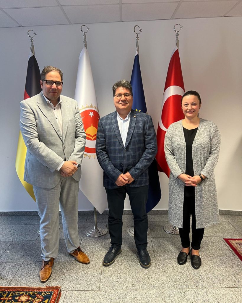 El Yazidi, ATIB Başkanı Cengiz’i Ziyaret Etti Zentralrat der Muslime (ZMD) Genel Sekreteri Abdassamad El Yazidi, ATIB Başkanı İmam Cengiz’i ziyaret ederek kendisini seçilmesinden dolayı tebrik etti. Genel Sekreter Özlem Başöz de Köln’deki ATIB merkezinde gerçekleşen görüşmeye katıldı. Verimli fikir alışverişi ve yapıcı iş birliğinin devam ettirilip derinleştirilmesi hedefleniyor.